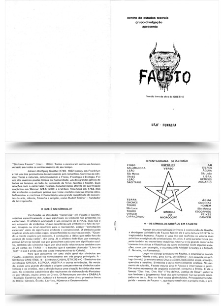 É nessa estrada que seguem os caminhos da nossa leitura de Fausto e dos critérios universais que nos permitem uma visão da relação de poder do homem no mundo, da criação e do criador e a discussão do próprio fazer teatral e sua forma de tocar o espectador. (...)