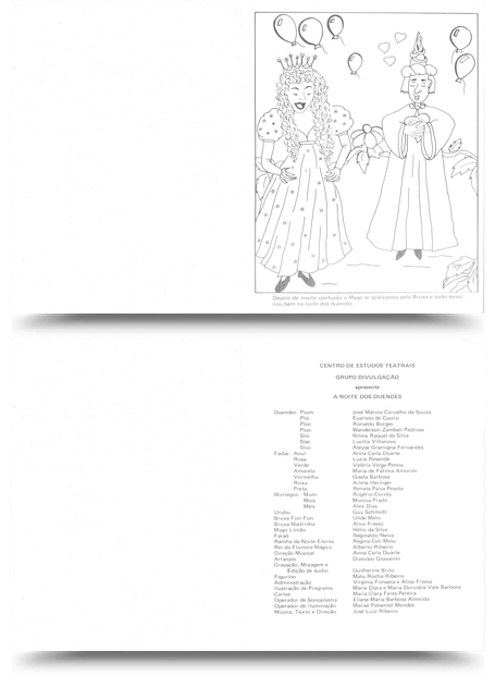 "A noite dos duendes”, com texto e música de José Luiz Ribeiro, foi montada em 1986, no Forum da Cultura. Brincando com os limites estereotipados de fadas boazinhas e bruxas más, a narrativa estabelece caminhos diferentes dos consagrados na dramaturgia infantil.